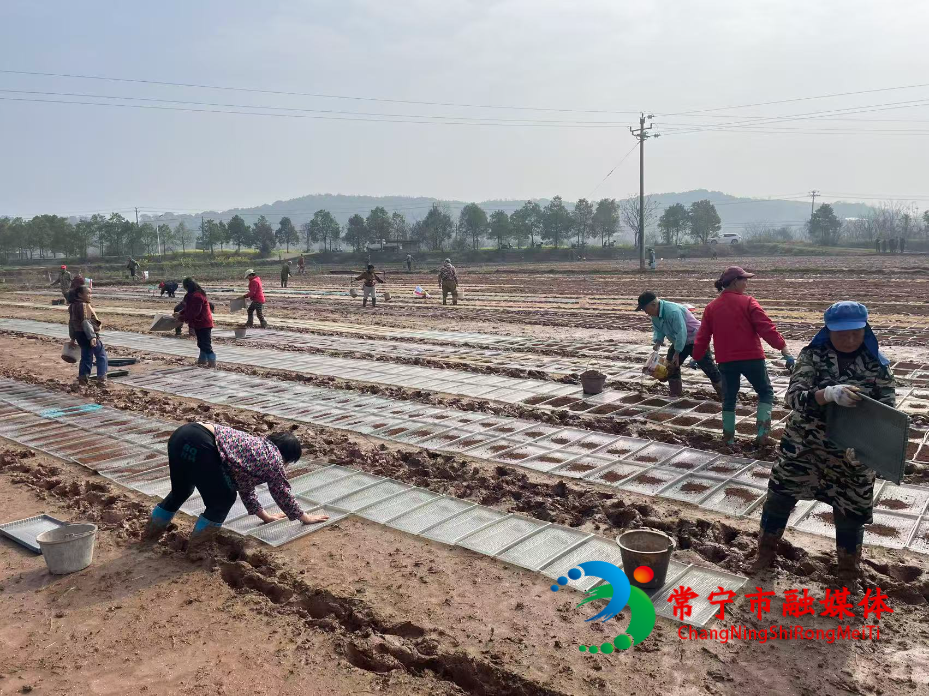 在麻石村集中育秧基地,铺土、播种、覆土、洒水等工序一气呵成,农户们分工协作、熟练操作,将一盘盘育秧盘整齐摆放,等待催芽出苗。与传统分散育秧相比,集中育秧、工厂化育秧有效抵御低温阴雨等天气影响,提升秧苗成活率与壮苗率,降低农户育秧成本,真正实现“好种出好苗、好苗夺丰收”。